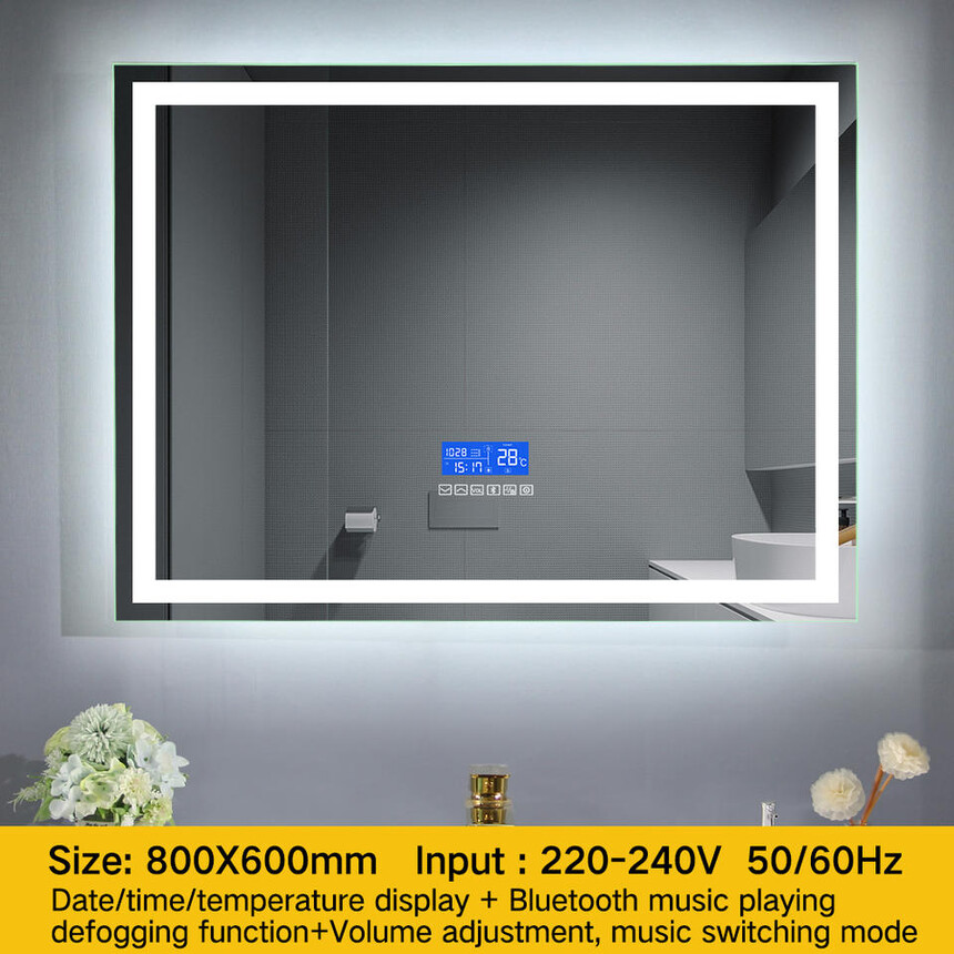 Modern luxury mounted home door smart led mirror defogger with time temperature display