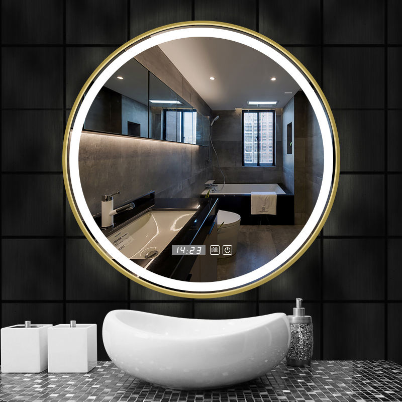 Up Market Luxury Illuminated Hotel Round Modern Big Wall Mirror Bedroom Vanities LED Bath Mirror